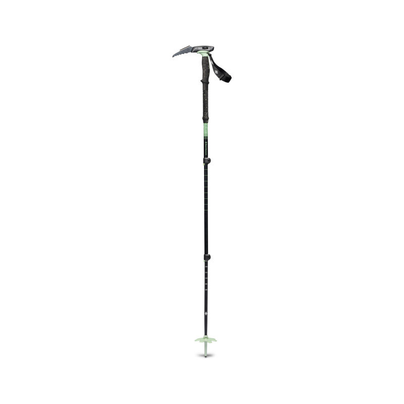 The Black Diamond Expedition 3 is whippet-ready, making it compatible with our whippet attachment for added security on steep terrain, and features dual FlickLocks for a full range of adjustability. This pole is compact and packable when not in use, and the extended foam grip allows for a range of hand positions, depending on terrain. With FlickLock locking mechanisms, three aluminum sections, and a girth-hitched strap, the Expedition 3 is ideal for any backcountry traveler. Extended EVA foam grips, a straight-edge grip scraper, and a tactile rubber “beak” for quick binding adjustments on the skin track all contribute to the simple yet useful feature-set of the newly redesigned Expedition grips.