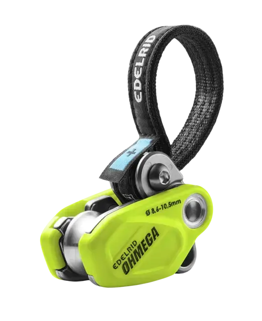 Rethink belaying - weighing in at barely 190 g, the compact OHMEGA is a highly versatile brake assistant suitable for use by a wide target group. Whether in climbing gyms, at the crag, or on alpine sport climbing routes (when using a single rope), it offers genuine added value in terms of safety and comfort for both climbers and belayers. This benefits beginners, experienced climbers, and pros as well as rope parties with and without a weight difference. The integrated HMPE sling enables users to switch between three different braking levels with a simple hand movement to suit the weight distribution. The integrated pulley keeps the friction generated at the first bolt lower than when using a quickdraw, so users won’t notice the OHMEGA when climbing or clipping, even on long and difficult routes. Thanks to the short HMPE sling and the resultant minimal activation distance, the belayer finds it easier to belay dynamically and softly, reducing the risk of impact-induced injuries. In the event of a fall, the cam brakes the fall, supporting the belayer and balancing out weight differences. As a result, the belayer won’t be pulled off the ground in the event of a big fall. With falls from a low height, the braking effect of the OHMEGA reduces the risk of both the climbing partners colliding and the climber hitting the ground. The OHMEGA also brakes reliably if the climber falls into the deivce. Simple, light, and offering enhanced safety and comfort for both climbing partners, the OHMEGA opens up new possibilities and makes belaying a completely new experience.