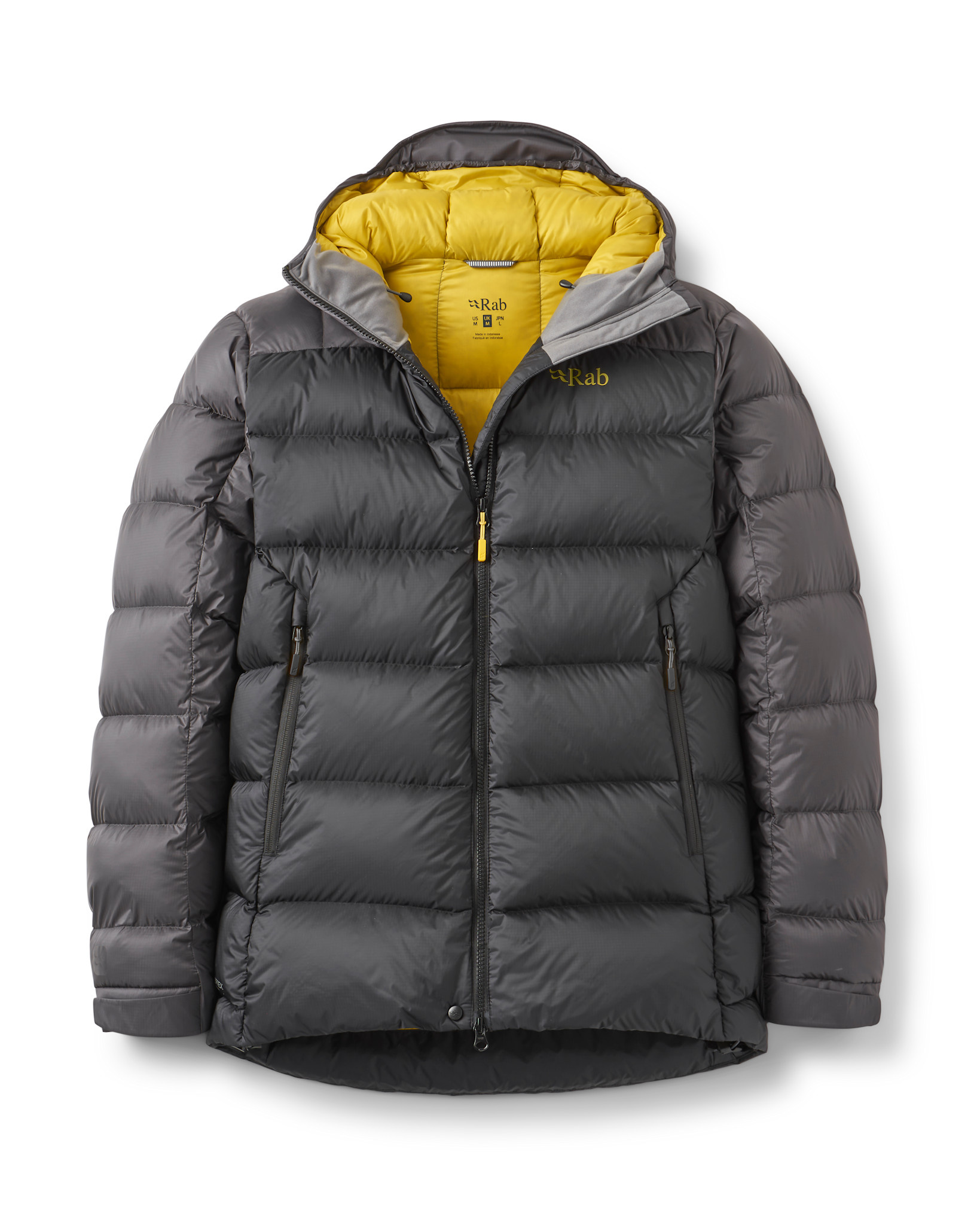 - Fully adjustable, helmet compatible down-filled hood with stiffened peak for increased protection