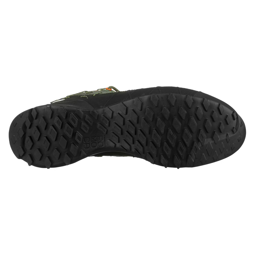 The POMOCA® outsole is designed for precision and sensitivity in mixed mountain terrain and its Butylic compound rubber ensures good grip on rock in both dry and wet conditions. In addition, the Switchfit adjustment system allows you to quickly shift from hike mode to climb mode by using the additional eyelet for better performance on smaller footholds and edges.
