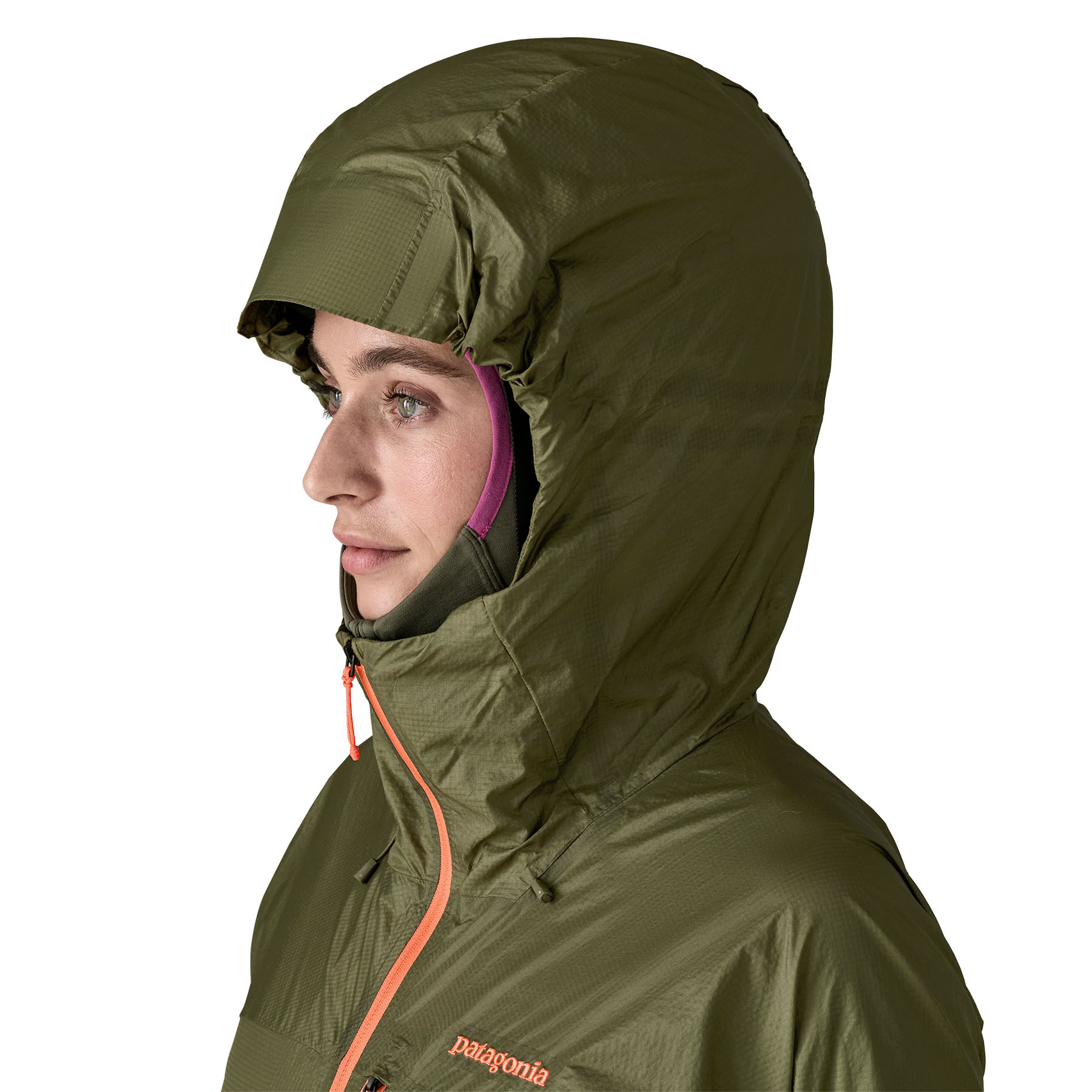 - Featherweight Houdini® 100% recycled nylon ripstop fabric that's treated with a durable water repellent (DWR) finish made without intentionally added PFAS to resist light moisture Helmet-Compatible, Easy-Off Hood